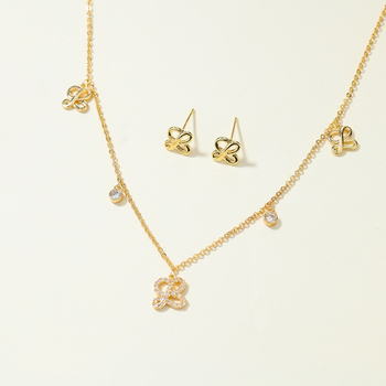 Set di Gioielli Premium in Rame Placcato Oro all'Ingrosso, Collana e Orecchini con Ciondoli a Forma di Nodo con Pietre CZ Incastonate per Donne