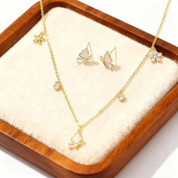 Set di Gioielli in Rame Fine con Pendente a Farfalla in Madreperla Naturale e Orecchini per Donna, Collana Delicata con Zirconi alla Moda