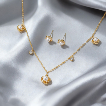 Elegante Set di Gioielli Vintage con Collana di Perle e Orecchini Placcati Oro con Ciondoli in Zirconia Cubica 5A per Donne Raffinate