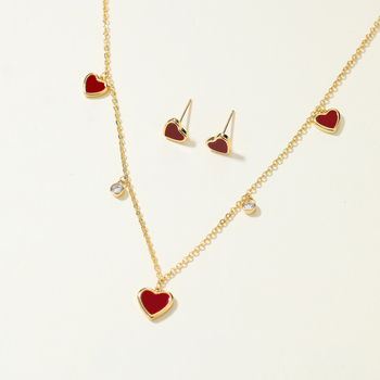 Set di Gioielli in Lega di Rame con Smalto Rosso Rubino, Ciondoli a Cuore, Collana e Orecchini, Regalo Elegante per Ragazze