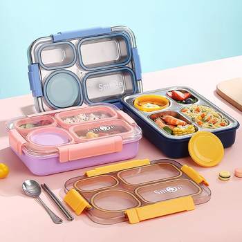 A tenuta stagna 4 griglie 304 scatola per il pranzo in acciaio inossidabile bento box di alta qualità con ciotole per zuppa bacchette all'ingrosso