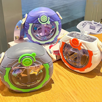 New kids cute straw cartoon bottiglia d'acqua in plastica con manico strap school outdoor aircraft bollitore cup
