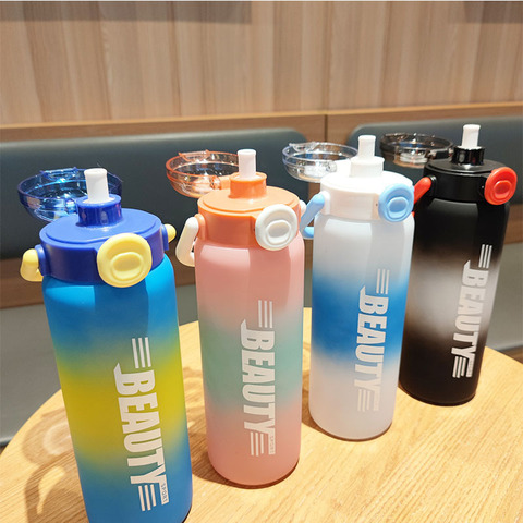 卸売り高品質スポーツプラスチックストローカップハンドル付き900mlポータブル水ボトル大容量グラデーションカラーケトル
