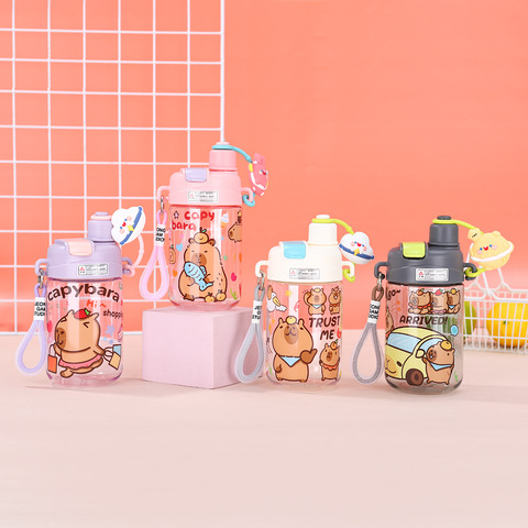 ベストセラー新着カピバラトンカップ学生大容量600mlストローカップ屋外ポータブルキャリーロープダブルドリンクカップ